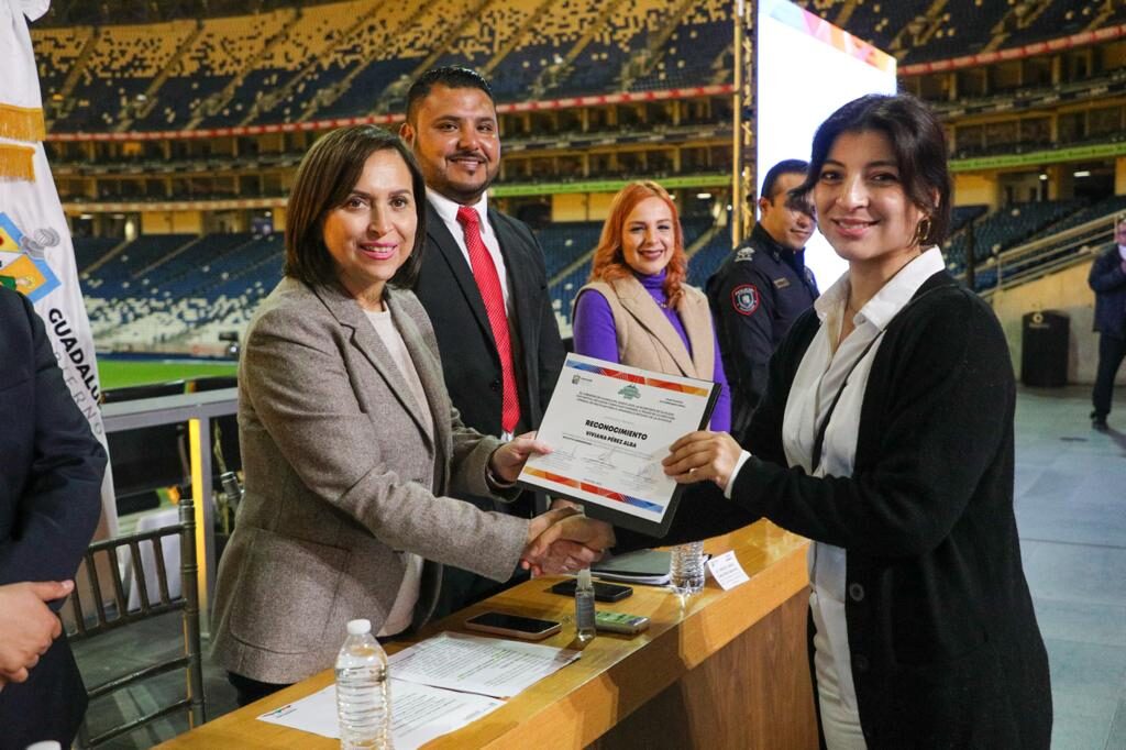 Gracias a las aportaciones que realizan en pro de la sociedad, en cada una de las disciplinas en las que se desempeñan y destacan, la alcaldesa Cristina Díaz otorgó a cinco jóvenes líderes el premio Juventud 2022 en su primera edición en las instalaciones del Estadio BBVA.