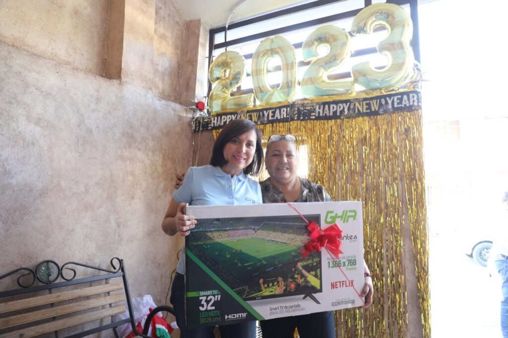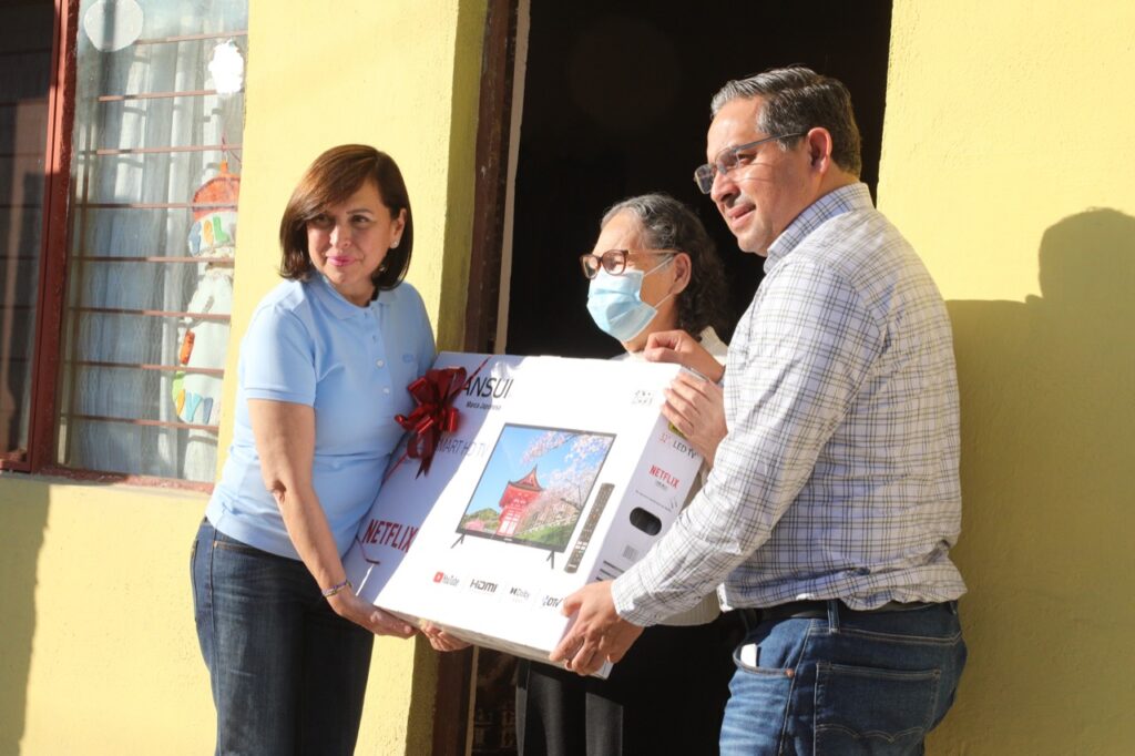 Al reconocer a los primeros en cumplir con el pago del Predial en Guadalupe, la alcaldesa Cristina Díaz acudió este domingo a los domicilios de los 13 contribuyentes para entregar pantallas de televisión.
