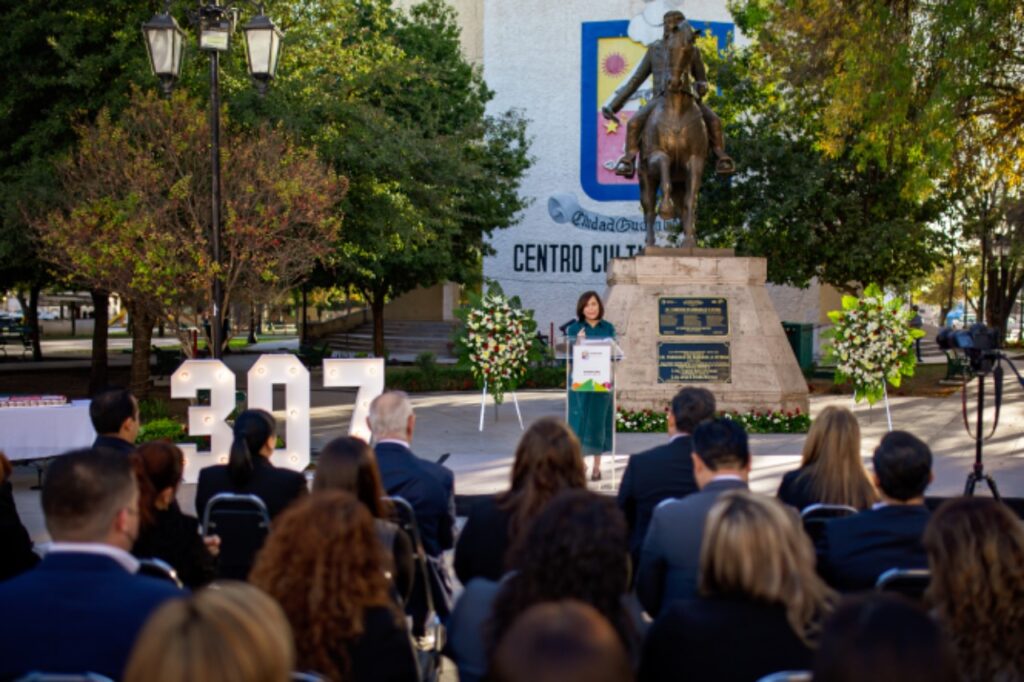 A través de una ceremonia que se llevó a cabo en la Plaza Principal, la alcaldesa Cristina Díaz en compañía de autoridades municipales encabezó la conmemoración del 307 Aniversario de la fundación del Municipio de Guadalupe.
