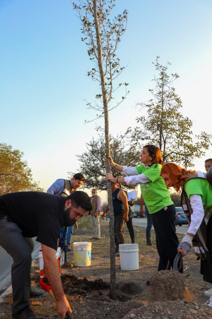 Cristina Díaz señaló que se sembraron 30 encinos verdes sobre el camellón de la Avenida Maestro Israel Cavazos en la Colonia Dos Ríos, y se tiene como meta continuar con otras tareas para cumplir con la Agenda de Acción Climática.