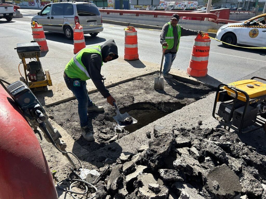 Reparado en tiempo récord el hundimiento en el puente Pino Suárez y Morones Prieto, ya fue reabierta la circulación en el carril afectado.
