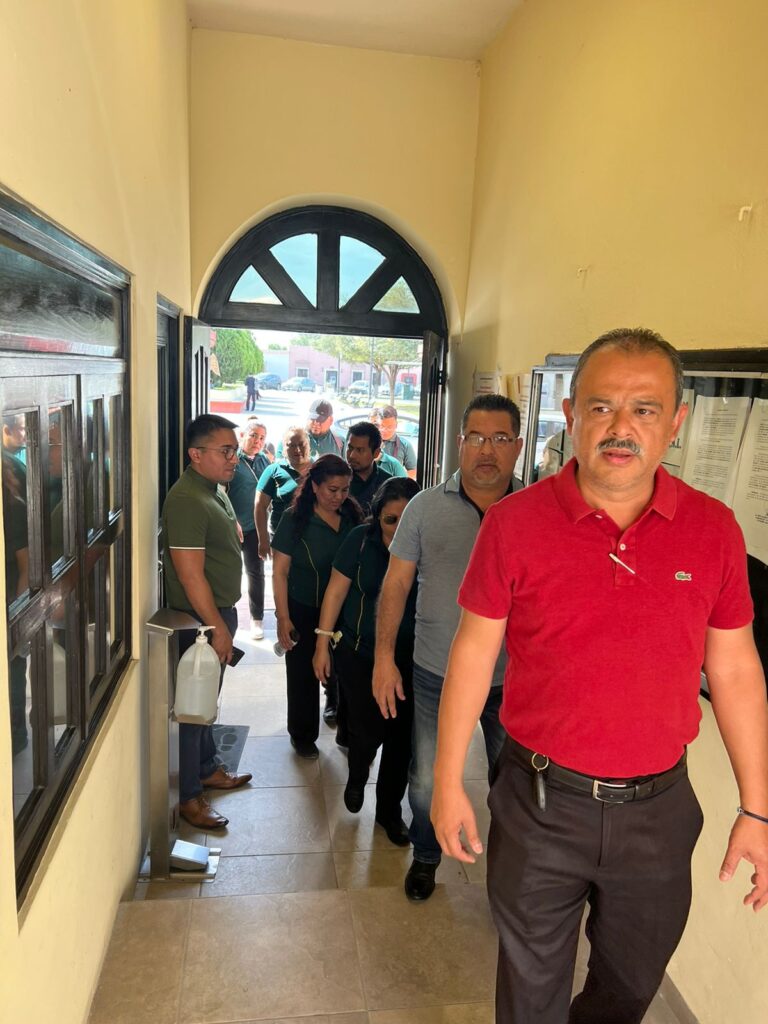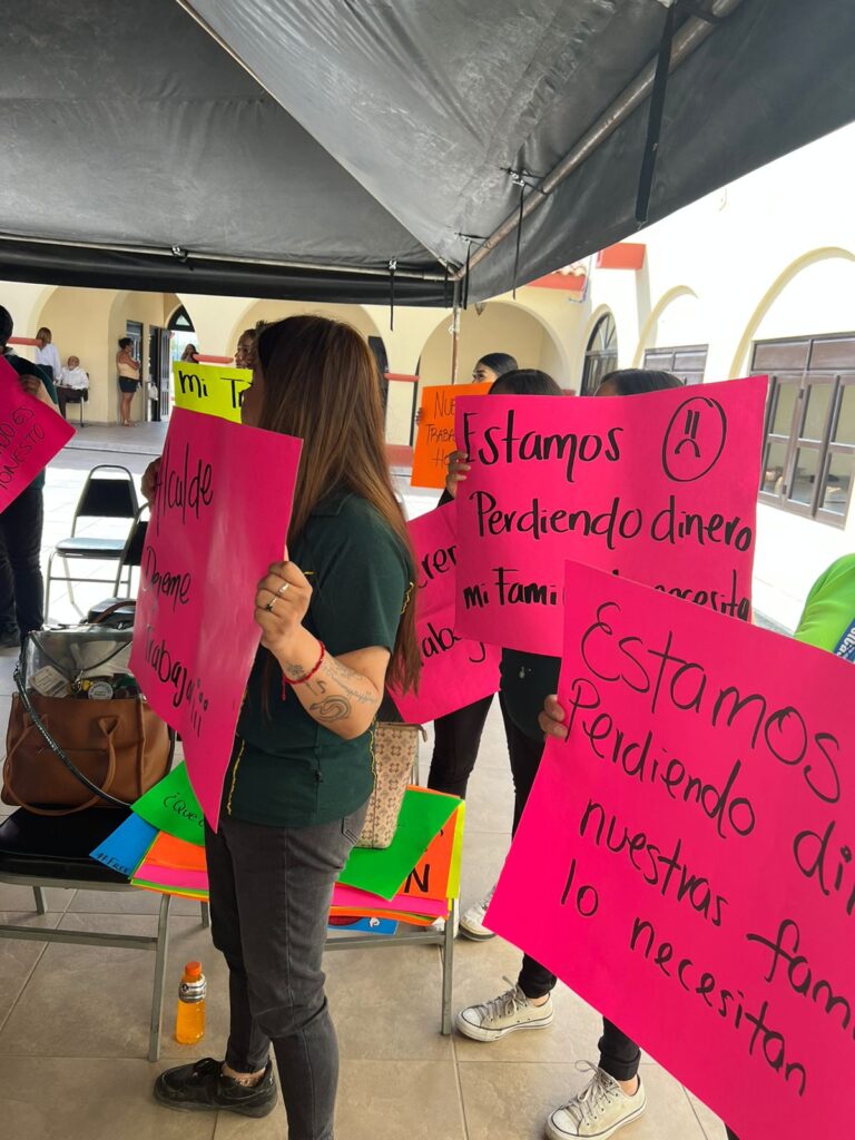 Un grupo de trabajadores de una casa de empeño se manifestó tomando parte de las instalaciones del Palacio Municipal de Pesquería luego que las autoridades clausuraron sus sucursales, imposibilitándoles regresar a sus empleos.