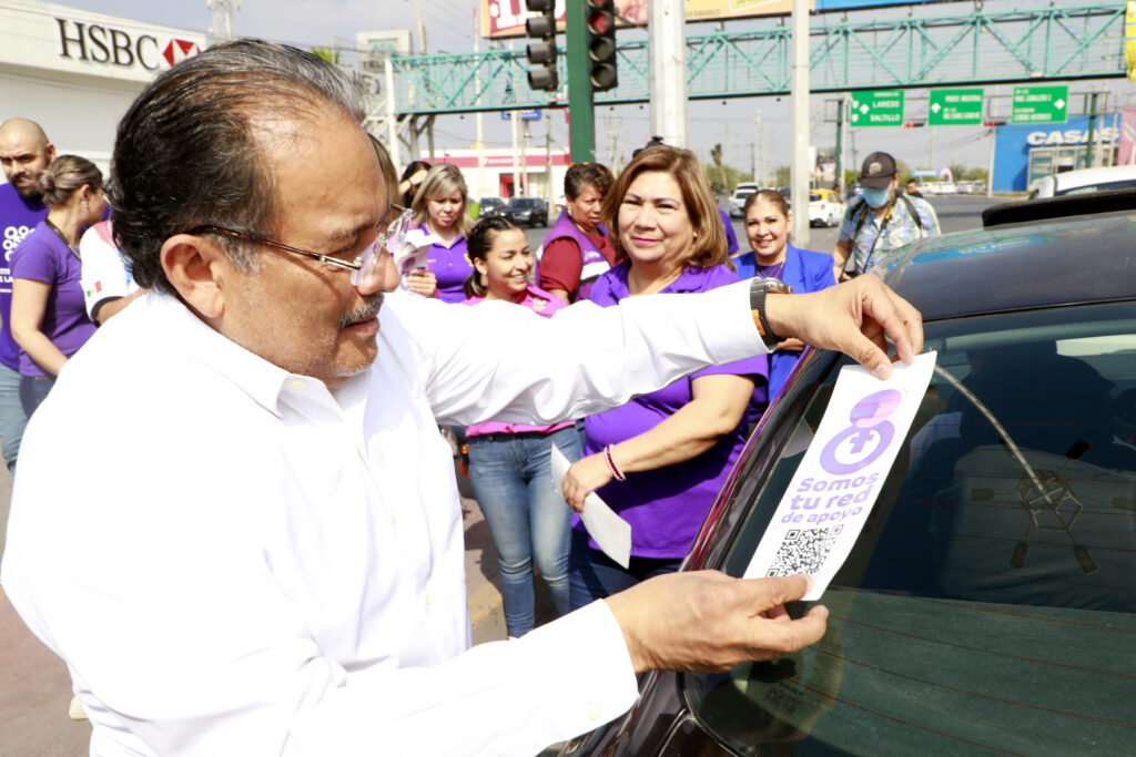 Con la colocación de calcomanías y folletos informativos, el alcalde Andrés Mijes, acompañado por personal de la Secretaría de la Mujer de Escobedo y del Instituto Estatal de las Mujeres, concientizaron a hombres y mujeres sobre la importancia de la igualdad de género.