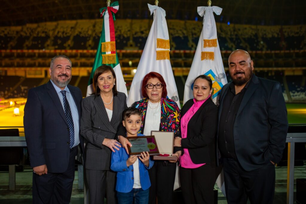 Cristina Díaz encabezó el evento en el Estadio BBVA, en donde se distinguió a atletas olímpicos y paralímpicos, empresas con responsabilidad social, ciudadanos y policías por su labor heroica; jóvenes creativos, académicos, profesionales de la salud, y grupos artísticos.