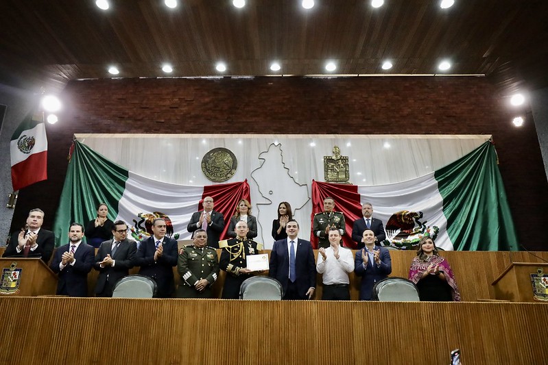 “El día de hoy agradecemos especialmente al Honorable Congreso del Estado de Nuevo León, muchas gracias por reconocer la historia del Heroico Colegio Militar plasmando en este recinto el nombre de nuestro glorioso plantel en letras de oro, tengan la certeza que en el Heroico Colegio Militar los preceptos de lealtad e institucionalidad demostrados por los cadetes desde hace 200 años son herencias de los mismos fundamentos que guían nuestro actuar las mismas voluntades y convicciones, siempre con determinación en suma representan un código de vida destinada a prevalecer con la misma fortaleza de honor y de lealtad, refrendamos el firme compromiso de seguir trabajando en beneficio del pueblo de México con entrega, abnegación, con estricto respeto a los derechos humanos y cumpliendo nuestras tareas con exactitud inteligencia por el honor de México, muchas gracias”, aseveró el General.
