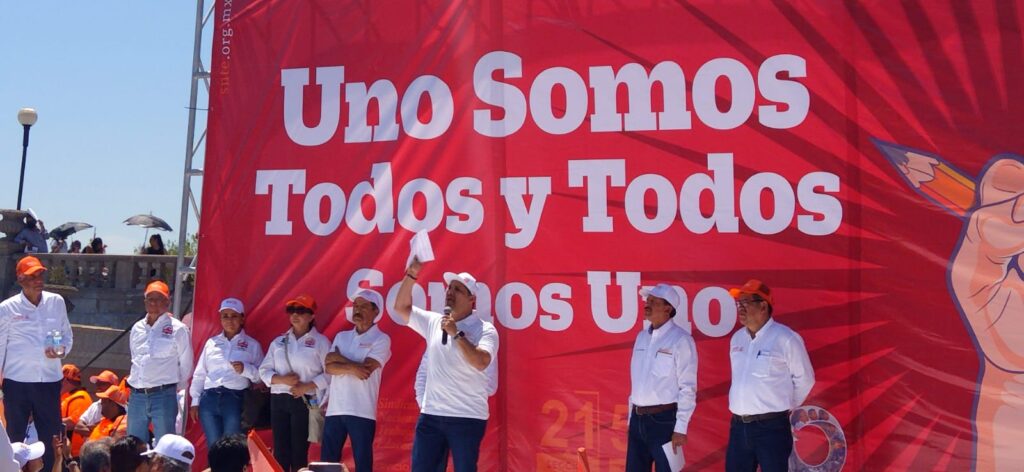 “Bajo estas premisas, aquí estamos los trabajadores de la educación, aquí está la organización sindical, para exigir al gobierno federal y al gobierno estatal, un mayor presupuesto para basificar a los compañeros que laboran bajo el régimen de contrato”, dijo.