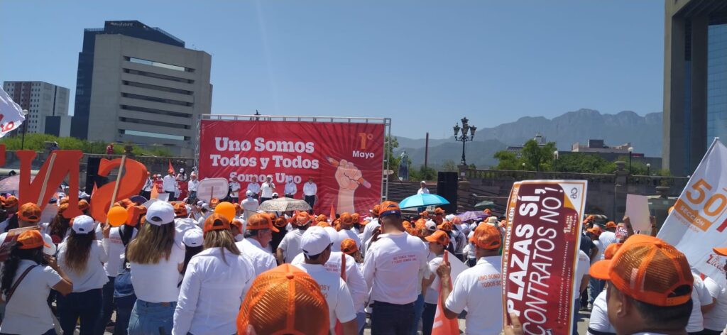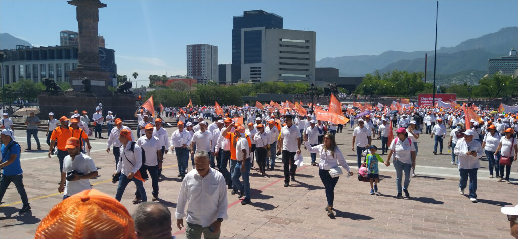 En la marcha, Juan José Gutiérrez, dirigente de la Sección 50, resaltó que es un trabajo que vienen realizando en la actual gestión, para fortalecer la comunicación con el Gobierno del Estado y buscar que se mejoren las prestaciones de los trabajadores de la educación en Nuevo León.