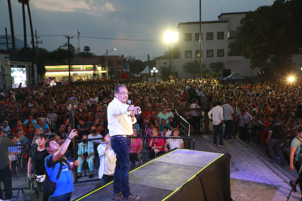 Ante una Plaza Principal repleta de asistentes, con estimaciones oficiales de unas 10 mil personas reunidas, el alcalde Andrés Mijes felicitó a las mamás por su día y por ser la fortaleza de miles de familias escobedenses, impulsando a sus hijos a superarse.