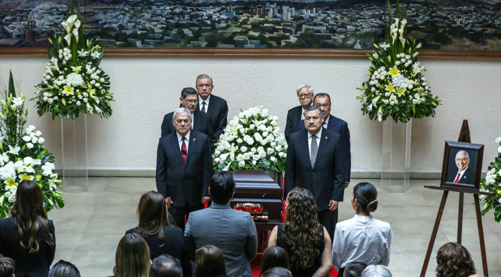 El rector Santos Guzmán López encabezó una serie de guardias de honor de cuerpo presente acompañado por miembros de la familia Todd Lozano, así como de directivos, profesores, investigadores y estudiantes de la UANL.
