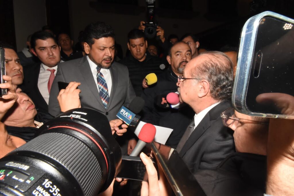 Cuando Orozco Suárez hablaba con la prensa, a la 1:16 horas, bajó de su despacho el secretario de Gobierno para acercarse al gobernador interino que estaba en una escalinata del Palacio y le mostró un documento. en el cual le informó de la decisión de Samuel García.