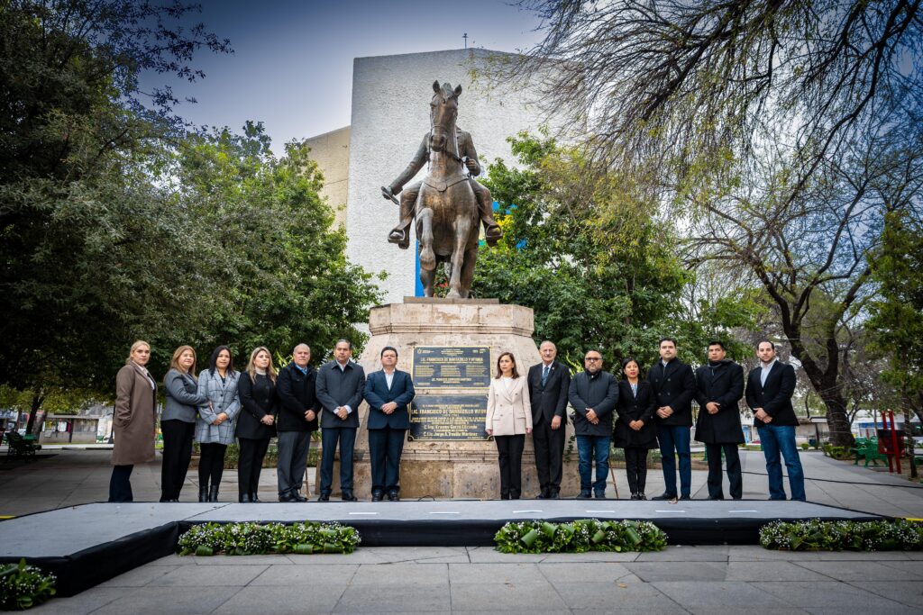 En la celebración en la Plaza Principal, la Presidenta Municipal montó una guardia de honor en la estatua de Francisco de Barbadillo y Vitoria, en compañía de secretarios, regidores, el cronista Erasmo Garza y monseñor Juan Carlos Castillo.