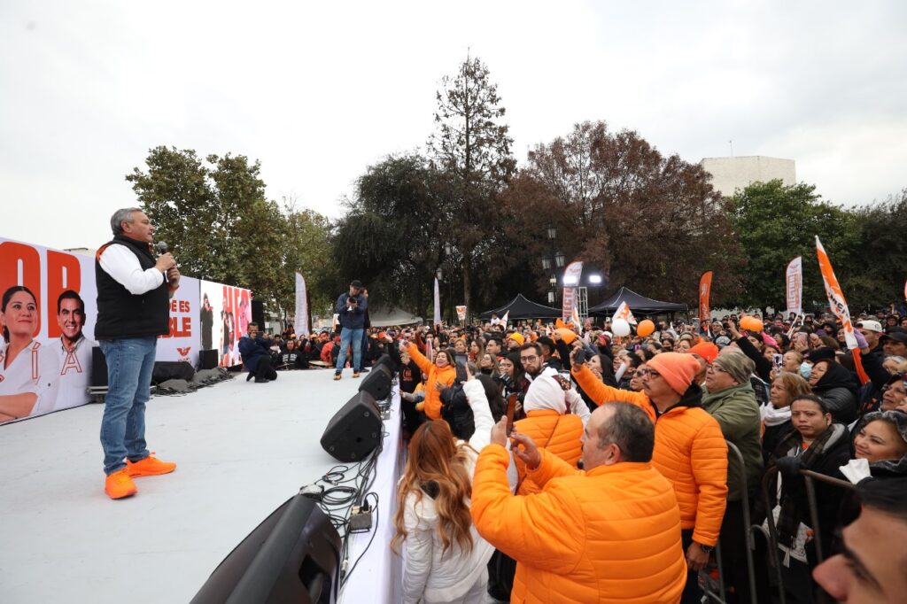 Ante una marea naranja que se dio cita en la Plaza Principal de este municipio, Héctor García se mostró orgulloso de haber nacido en esta ciudad, así como de su gente.