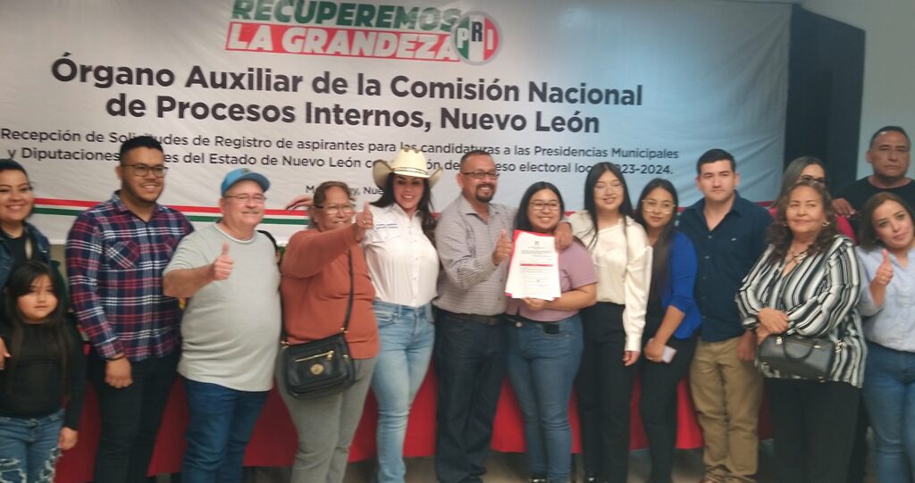 Acompañado de un grupo de simpatizantes y de la aspirante a senadora Karina Barrón, entregó su documentación en el PRI al órgano auxiliar de procesos electorales, instalado en el Auditorio Lázaro Cárdenas del tricolor.
