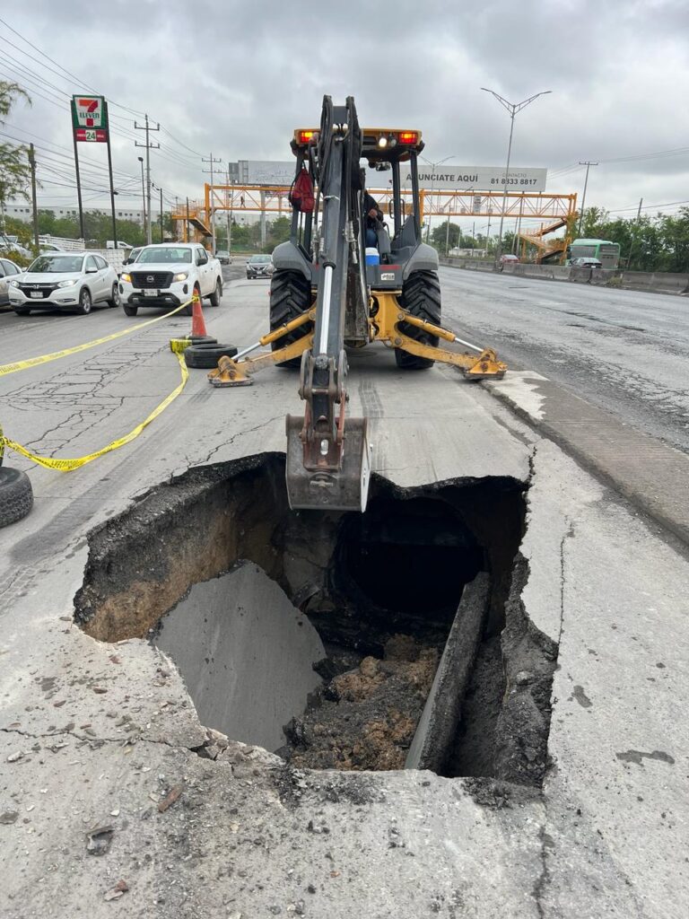 Atiende Escobedo socavón formado en Carretera a Laredo