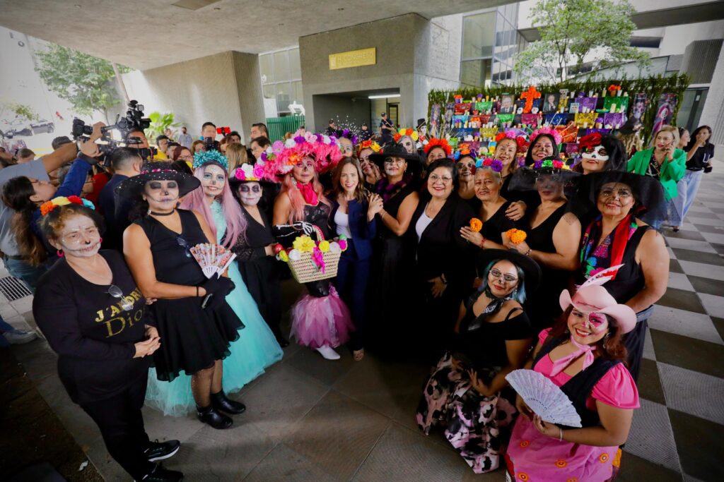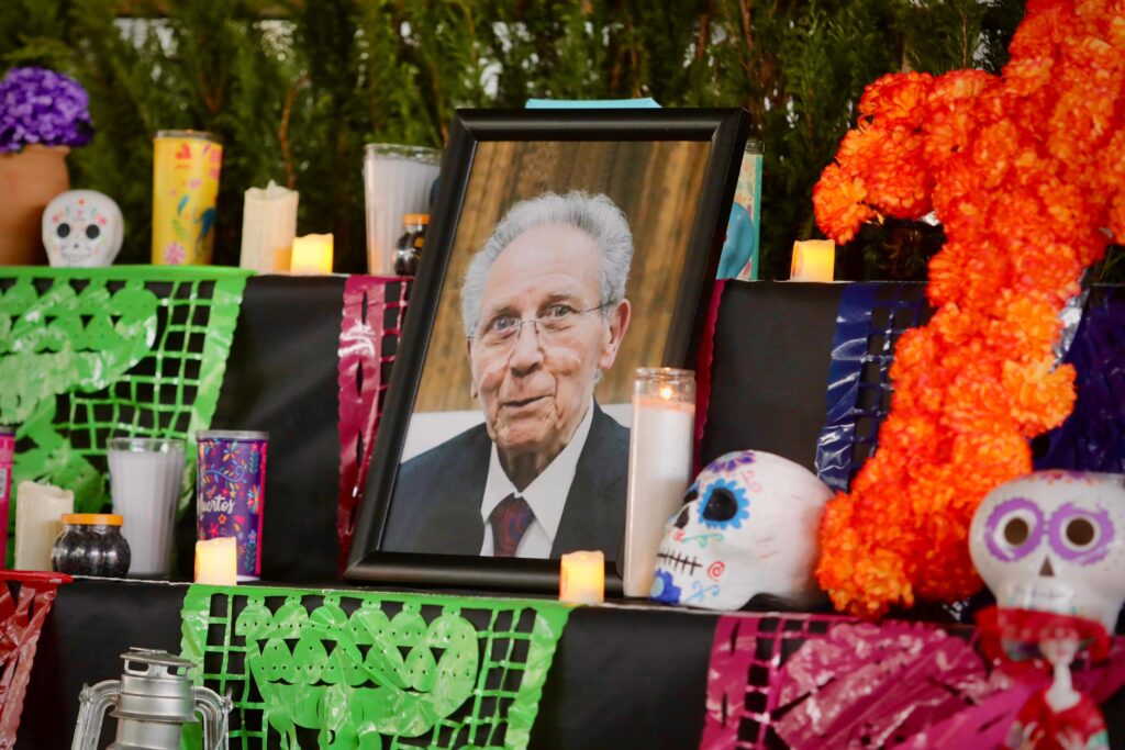 “Este año, dedicamos este altar de muertos a figuras destacadas y emblemáticas para nuestro querido estado, comenzando por el Arquitecto Jesús Héctor Benavides Fernández, conocido en los medios como el Arquitecto Benavides; cuyo legado, se traduce en una figura icónica en los medios de comunicación de Nuevo León y de México”, destacó Escobedo Vázquez.