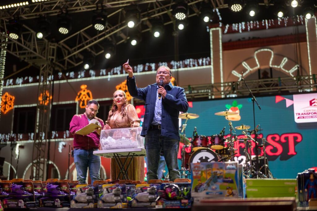 El Alcalde Andrés Mijes junto a su esposa y Presidenta del DIF, Yesica Torres encabezaron los festejos navideños y en su mensaje precisó que esta temporada es para convivir en familia, por ello precisó la importancia de seguir fomentando la unidad familiar, el amor y la paz.