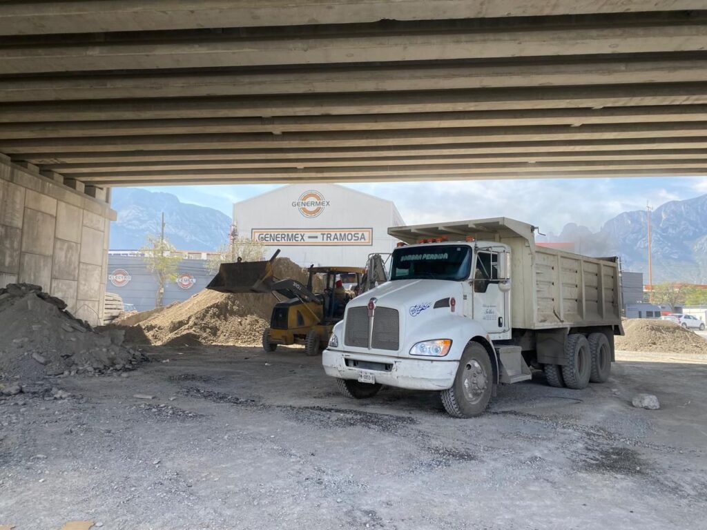 El Gobierno de Santa Catarina, a través de la Secretaría de Servicios Públicos del Municipio, retira escombro, tierra y materiales de construcción diversos de la parte inferior del mega puente Díaz Ordaz-Ordóñez, lo que permitirá regular el paso de vehículos en ese sector.