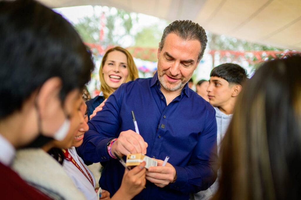 En compañía de su esposa y presidenta del DIF municipal, Gaby Oyervides y de la directora General del Instituto de la Juventud Regia (Injure) Maday Cantú, el edil los exhortó a participar y proponer soluciones a las problemáticas de la ciudad.