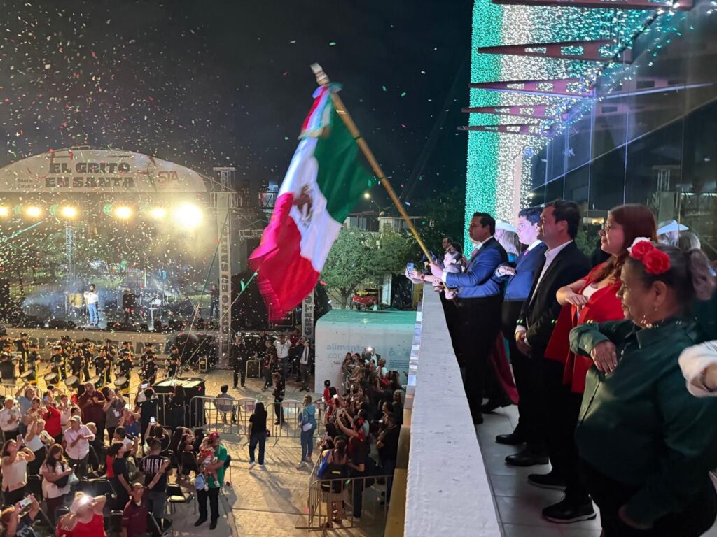 El alcalde de Santa Catarina, Jesús Nava Rivera, encabezó el tradicional Grito de Independencia, que se realizó en la explanada de la Torre Administrativa.