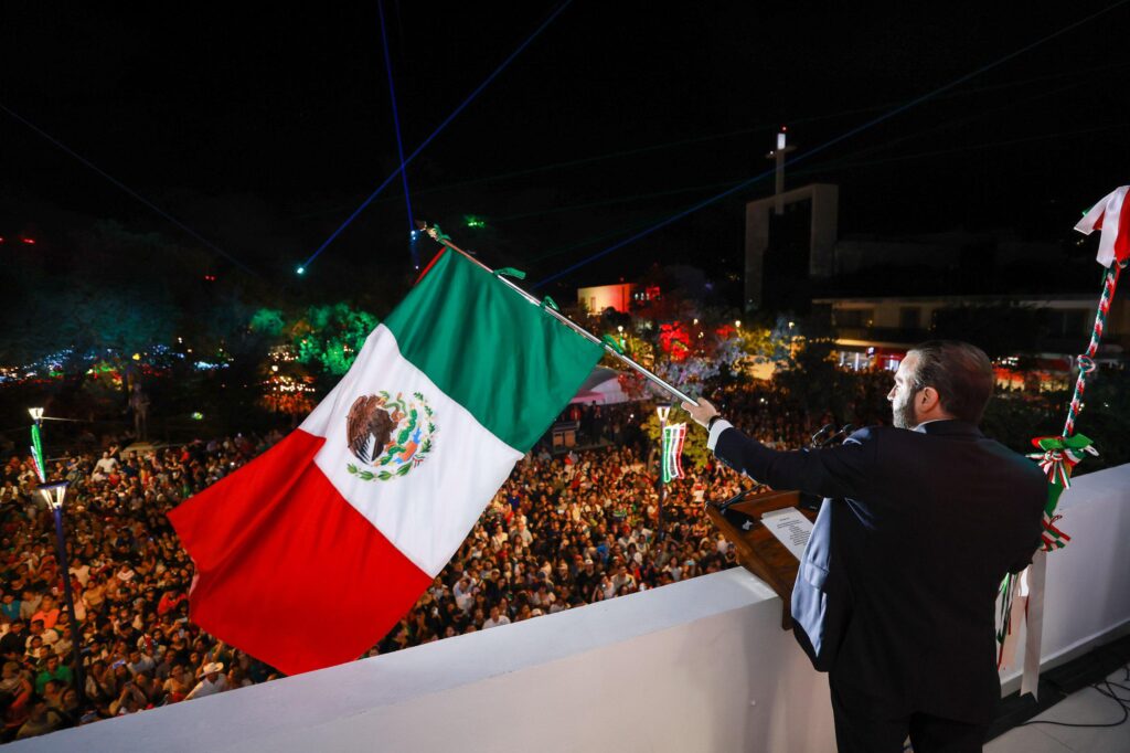 El encargado de dar el tradicional Grito de Independencia fue el secretario del Ayuntamiento, Mauricio Farah Giacomán, quien, en representación del alcalde Mauricio Fernández Garza, encabezó la ceremonia cívica ante más de 12 mil asistentes.