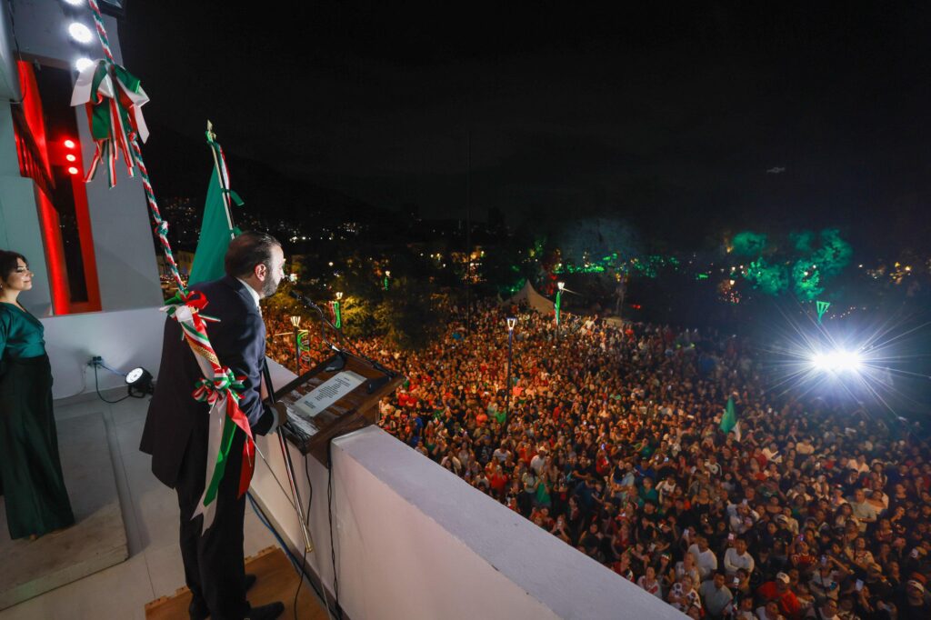“¡Viva la Independencia nacional! ¡Vivan los héroes que nos dieron Patria! ¡Viva Hidalgo! ¡Viva Morelos! ¡Viva Allende! ¡Viva Aldama y Matamoros! ¡Viva Josefa Ortiz de Domínguez!”, entonó Farah Giacomán.