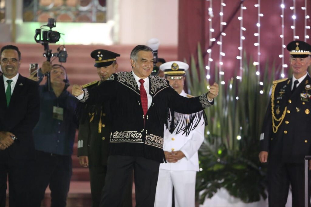 Mediante un enlace virtual, el gobernador junto a la presidenta del DIF Tamaulipas, María de Villarreal y las y los asistentes presenciaron el histórico Grito de Independencia de la primera presidenta de México, Claudia Sheinbaum Pardo, desde Palacio Nacional.