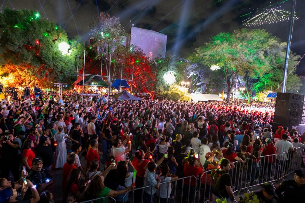 La noche fue de fiesta en el centro histórico de Guadalupe y las familias gozaron al son del mariachi, espectáculos musicales, bailes folklóricos, fuegos artificiales a través de un video mapping, sin faltar los antojitos mexicanos.
