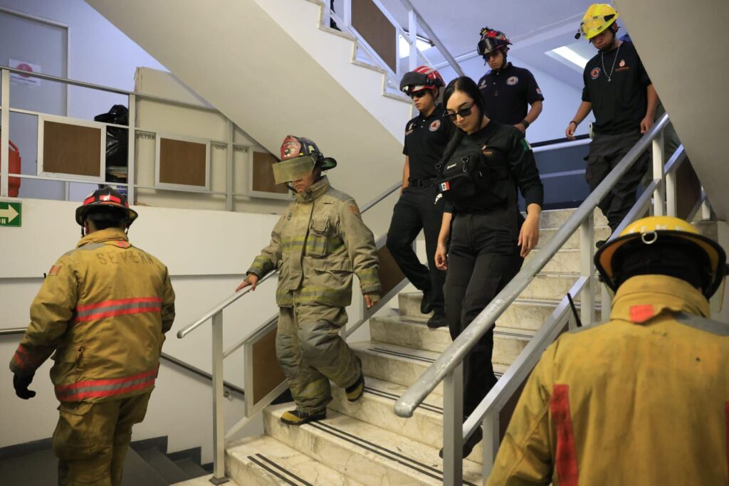 Posteriormente, personal de la corporación fue parte del simulacro nacional, recordando a las víctimas y rescatistas de los sismos de 1985 y 2017 en la ciudad de México.