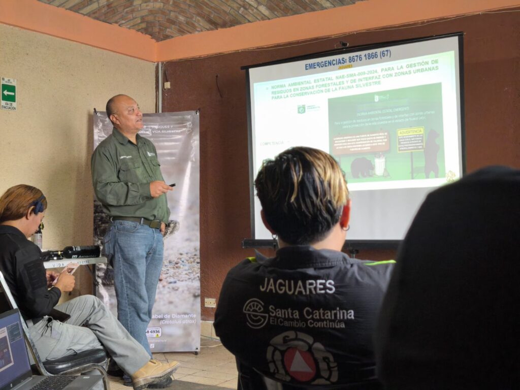 Elementos de Protección Civil recibieron un taller y capacitación por parte de Parques y Vida Silvestre sobre la fauna para saber su manejo y protocolos entre los que destacan los osos, una especie protegida ante la NOM-059-SEMARNAT-2010.