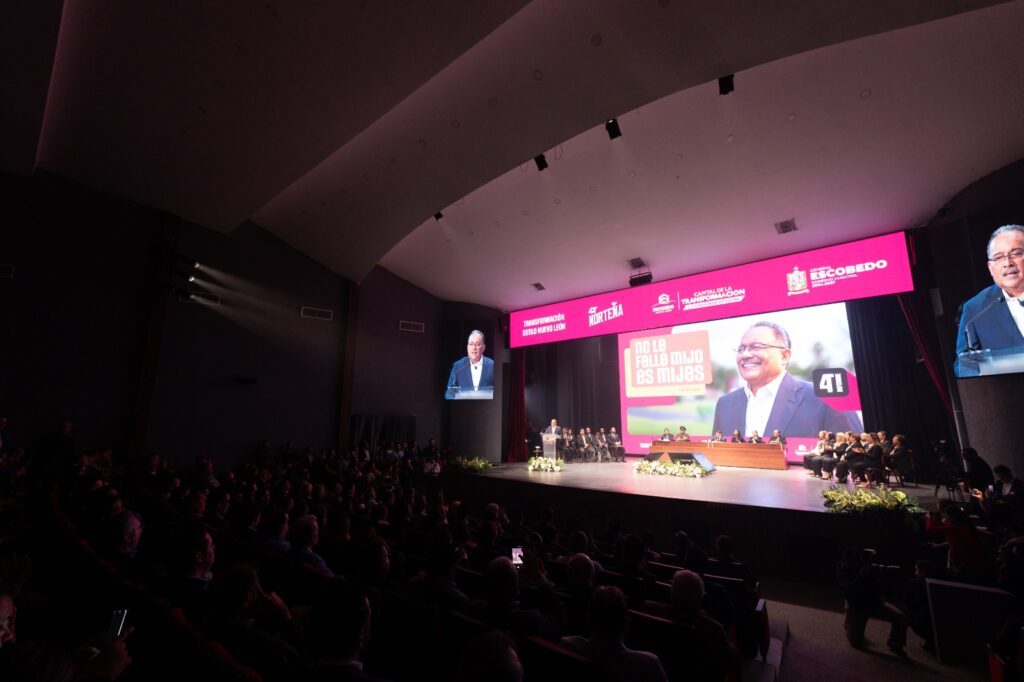 Desde el Teatro Digital Fidel Velázquez y ante el Gobernador Samuel García, representantes de la política, funcionarios estatales y municipales, empresarios, activistas y ciudadanía, Mijes precisó que en Escobedo el Crecimiento Equitativo promovido por la Presidenta Claudia Sheinbaum Pardo sí es posible.