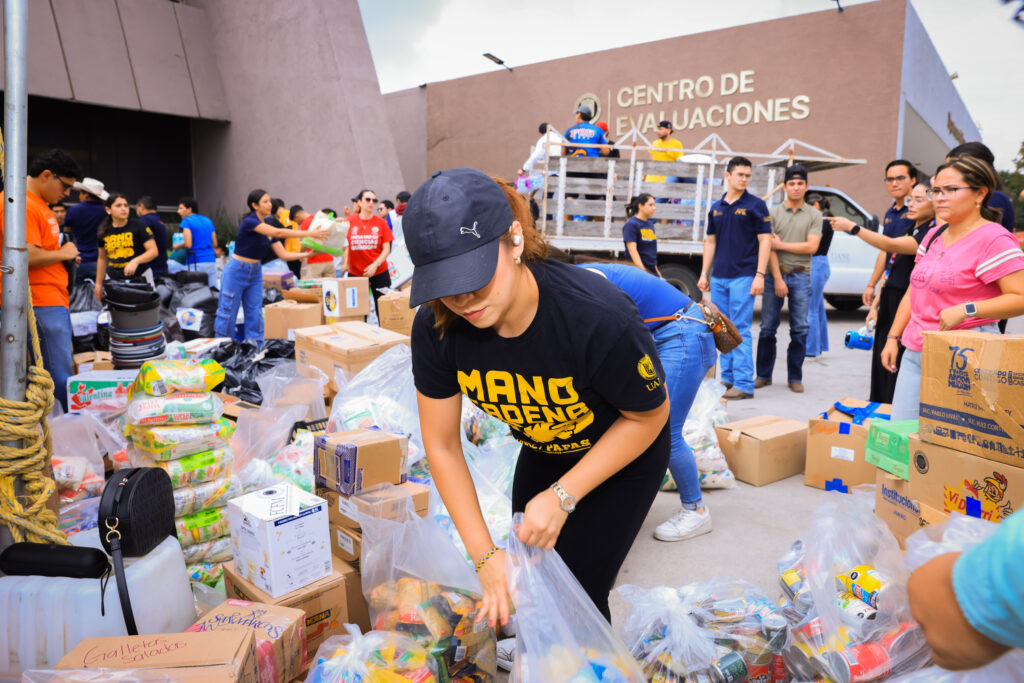 El esfuerzo coordinado por la Dirección de Actividades Estudiantiles (DAE) y el Centro de Desarrollo Integral del Estudiante (CDIE) de la UANL resultó en un apoyo de 11 toneladas de agua, alimento para bebés, enlatados, artículos de limpieza y de higiene personal.