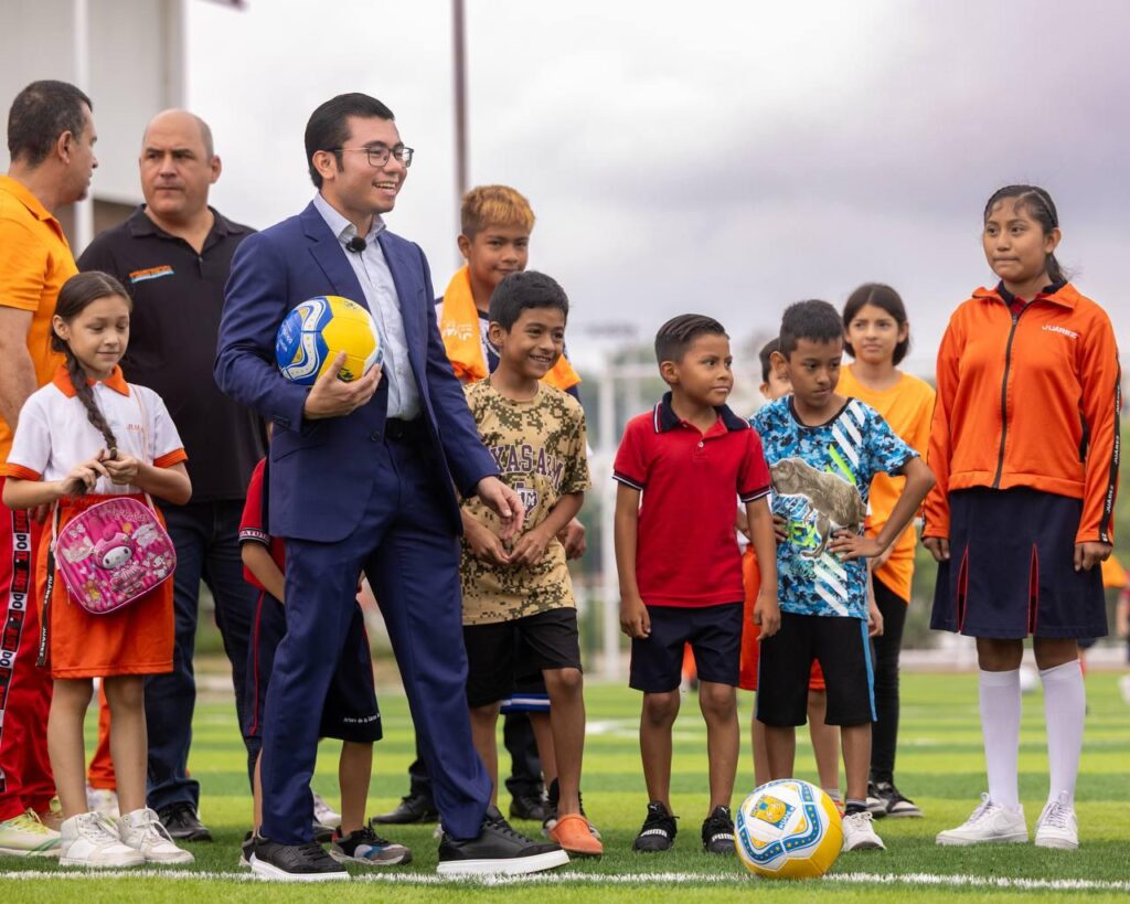 En un tiempo récord de 70 días, el alcalde Félix Arratia Cruz logró transformar un terreno abandonado y de terracería en una de las canchas de pasto sintético más modernas y grandes del municipio, consolidando así el nuevo Espacio de Unidad Los Puertos.