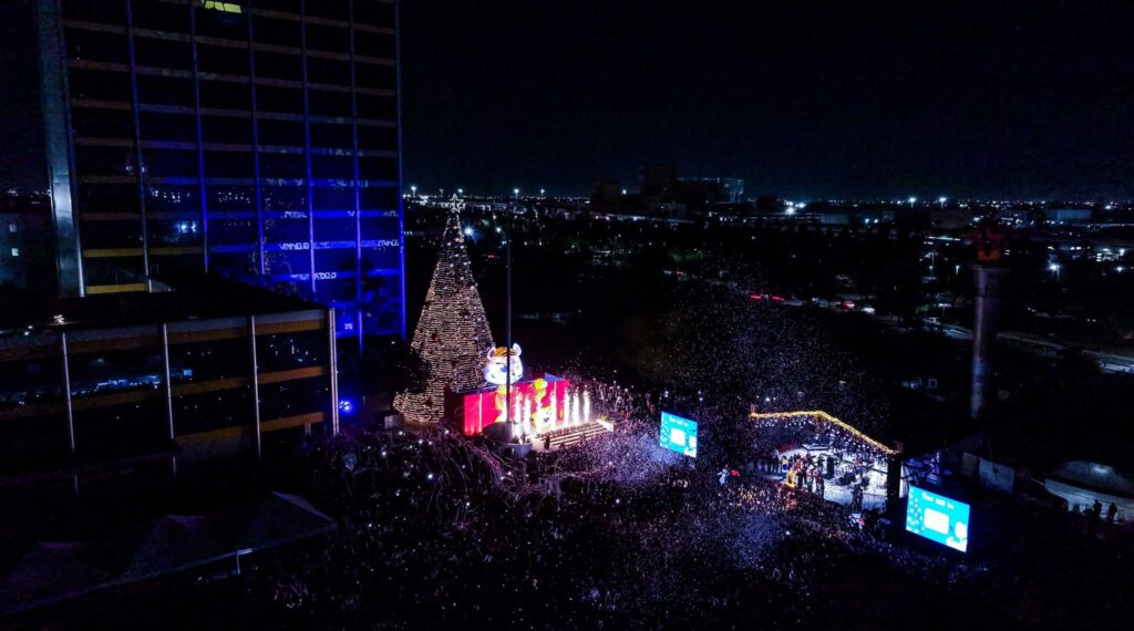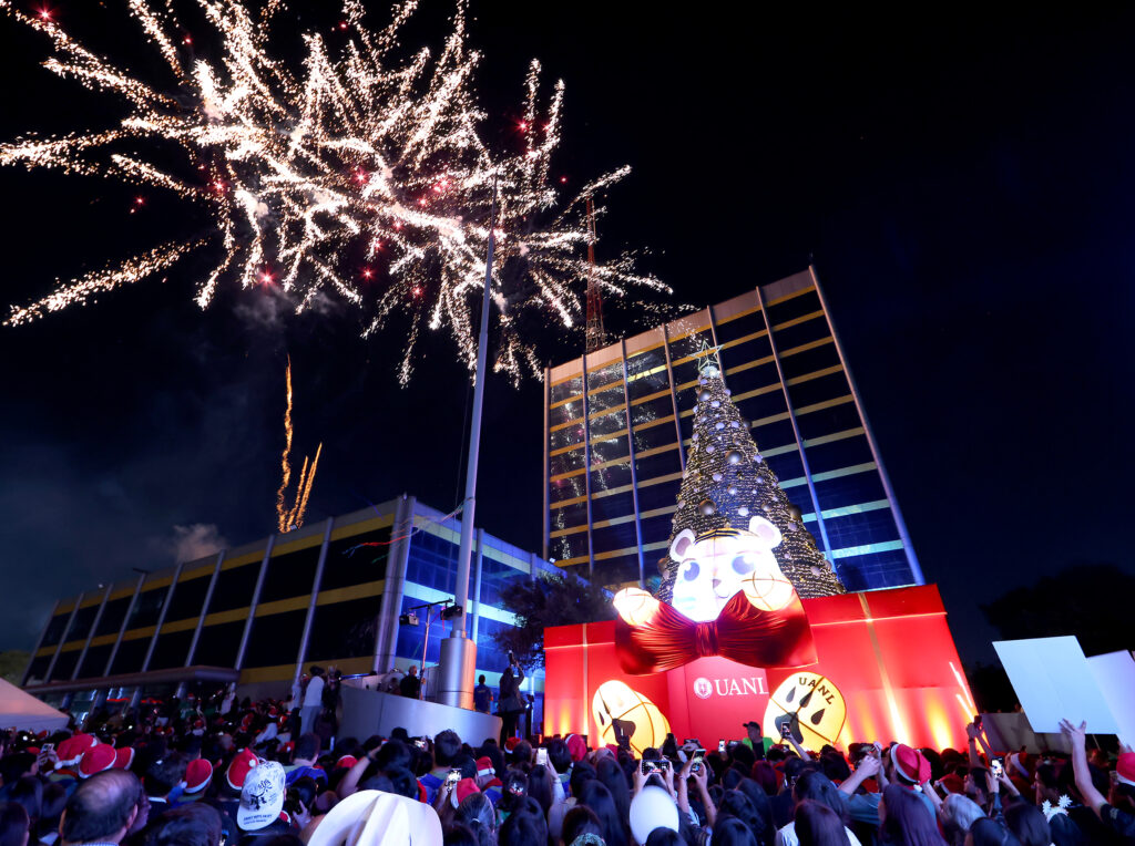 Con un mensaje de unión y paz, la Universidad Autónoma de Nuevo León realizó el tradicional encendido del pino navideño en presencia de la comunidad universitaria y sus familias.