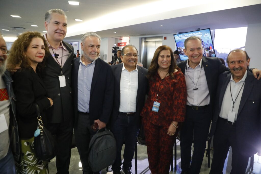 El Diálogo Nacional reunió a alcaldes como Adrián de la Garza, de Monterrey, y Jesús Nava, de Santa Catarina; a la Secretaria de Economía estatal, Betsabé Rocha, además de diputados locales, empresarios, cámaras industriales y funcionarios que trabajaron en la definición de rutas para llevar el Plan México a cada territorio.