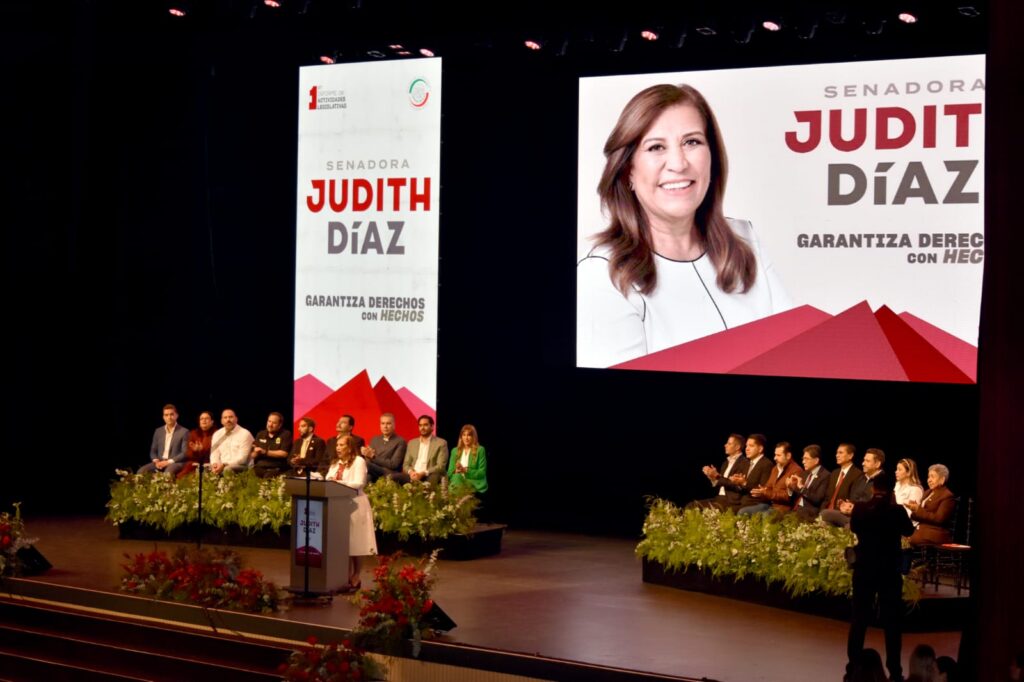 La senadora Judith Díaz presentó su primer Informe de Actividades en un acto abierto y cercano a la ciudadanía, acompañada por alcaldes, diputadas y diputados locales, legisladores federales, compañeros senadores, empresarios quienes respaldaron su labor y los resultados presentados durante su primer año de trabajo.