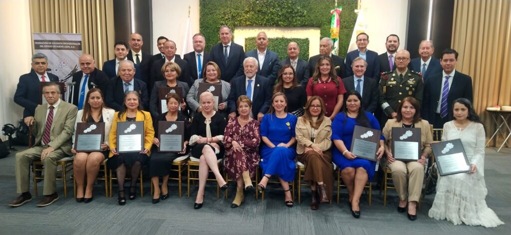El Reconocimiento a la Excelencia Profesional 2025, otorgado por la Federación de Colegios Profesionales del Estado de Nuevo León, tuvo varias figuras destacadas, como el Dr. Fernando Castillo Saucedo, representante legal del Colegio de Abogados de Nuevo León, quien fue homenajeado junto al Ing. José Luis Valdez, del Colegio de Ingenieros Civiles de Nuevo León A. C., al Dr. Jose Neri Barboza del Colegio de Odontologos de Nuevo León A.C. Dra. Martha Patricia Toledo del Colegio de Licenciados en Trabajo Social de Nuevo León A.C., entre otros 18 especialistas por su destacada trayectoria y servicio al gremio.