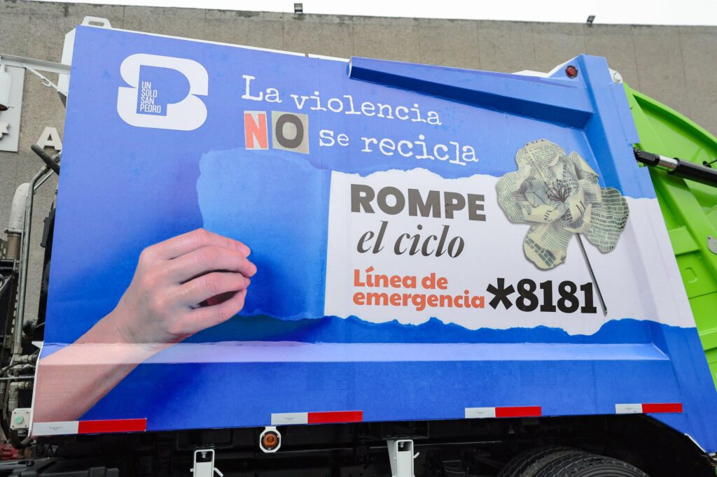 Durante las próximas semanas, unidades de recolección portarán el mensaje “La violencia no se recicla” y la línea *8181, con el fin de mantener presente en la comunidad la importancia de la prevención, el acompañamiento y la denuncia.