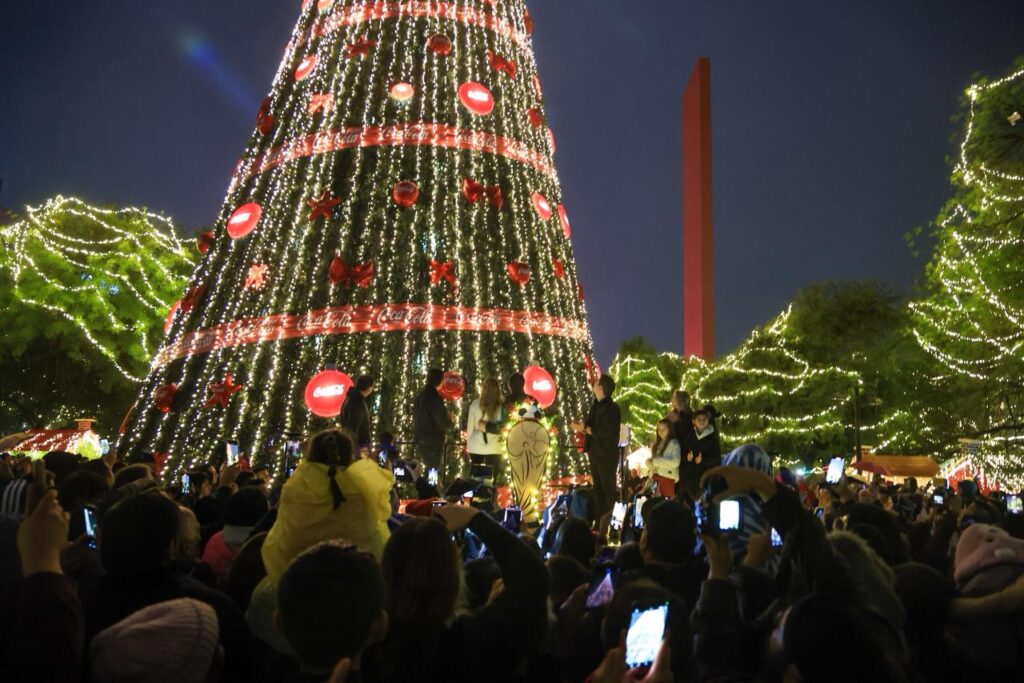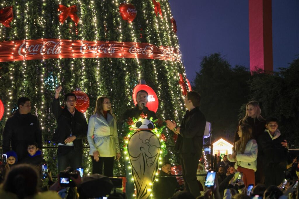 Con la proyección de un video mapping y el tradicional encendido del pino, el alcalde Adrián de la Garza, acompañado de su esposa y presidenta del DIF Gaby Oyervides, inició junto a cientos de familias las celebraciones de la magia de la “Regia Navidad Mundialista”.