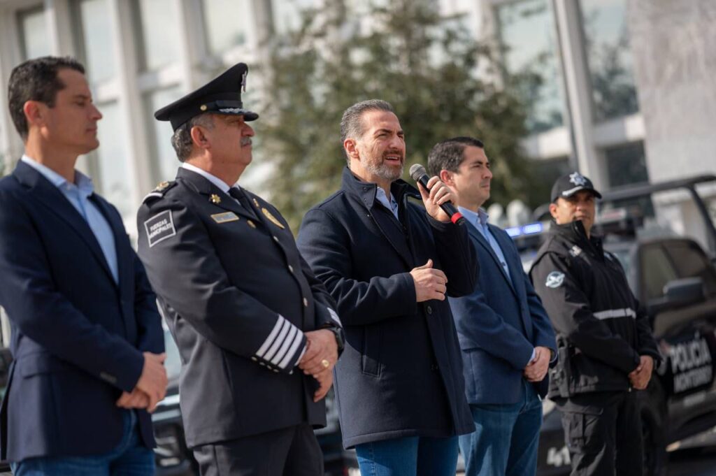 Para fortalecer la vigilancia en Monterrey, el alcalde Adrián de la Garza entregó a la Secretaría de Seguridad y Protección Ciudadana 15 nuevas unidades y torretas inteligentes en 50 vehículos.