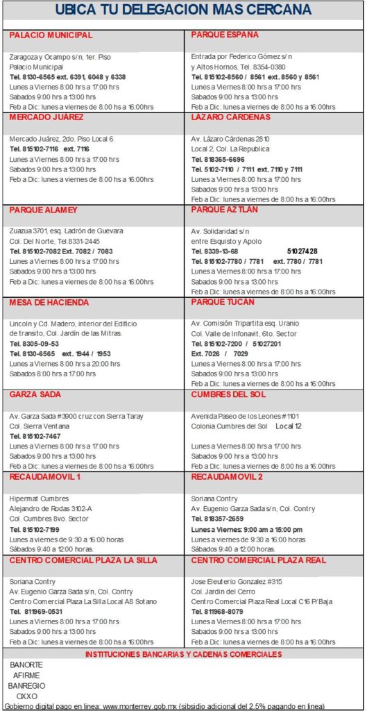 Para facilitar el pago, las delegaciones municipales abrirán sus cajas receptoras desde el 1 de enero, con horarios especiales durante los primeros días del año. El jueves 1 de enero la atención será de 7:00 a 14:00 horas; el viernes 2 de enero de 8:00 a 17:00 horas; y el sábado 3 de enero de 9:00 a 13:00 horas.