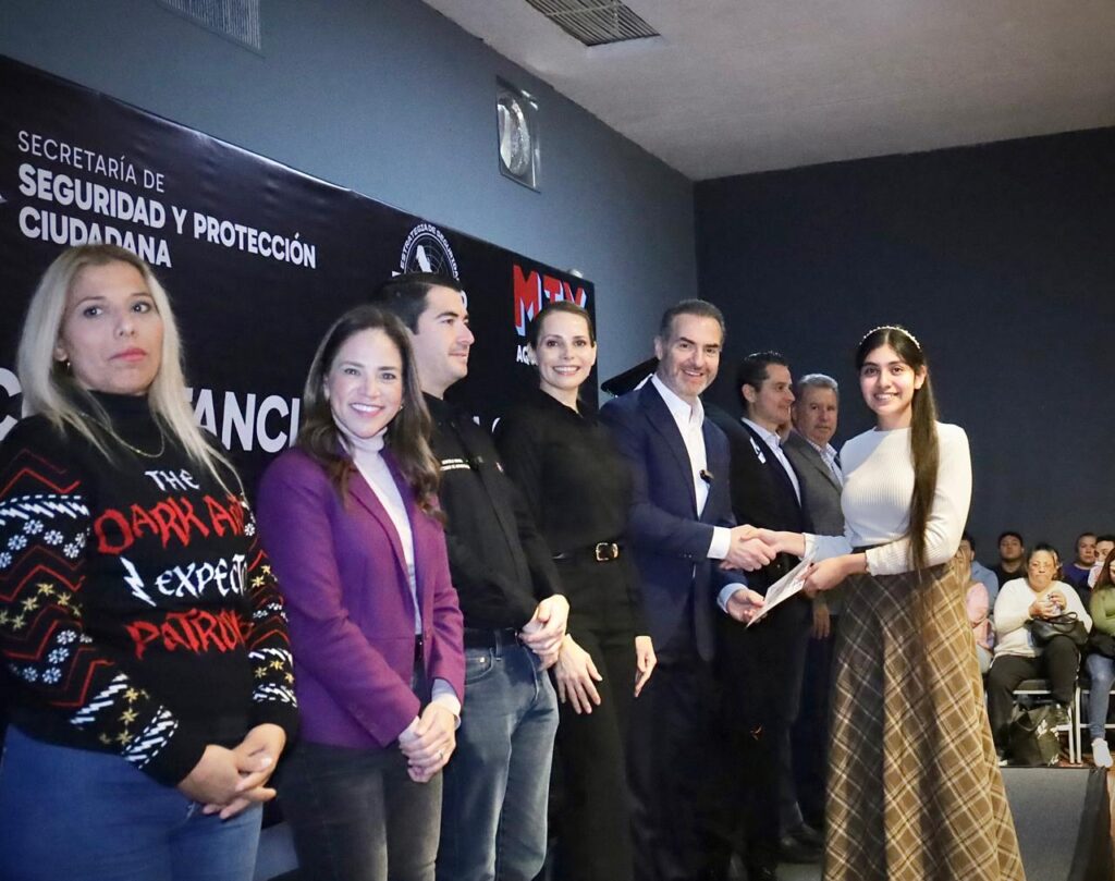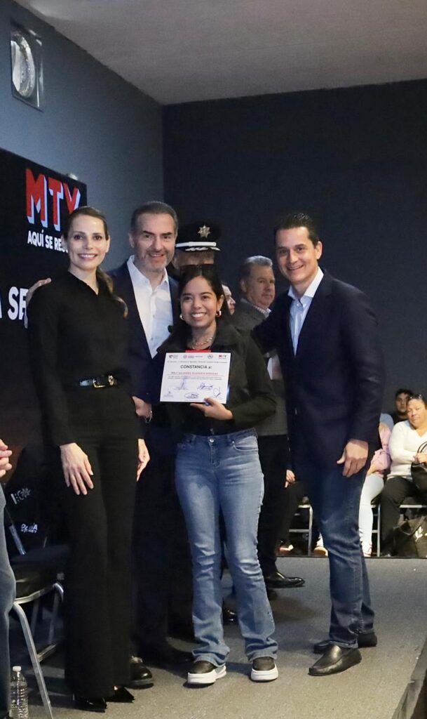 A la entrega de constancias acudieron Ivonne Álvarez, directora General del DIF Monterrey; Fernando Margáin, Jefe de Gabinete; Marcelo Segovia, secretario de Administración; y Ricardo González, director de Tránsito.