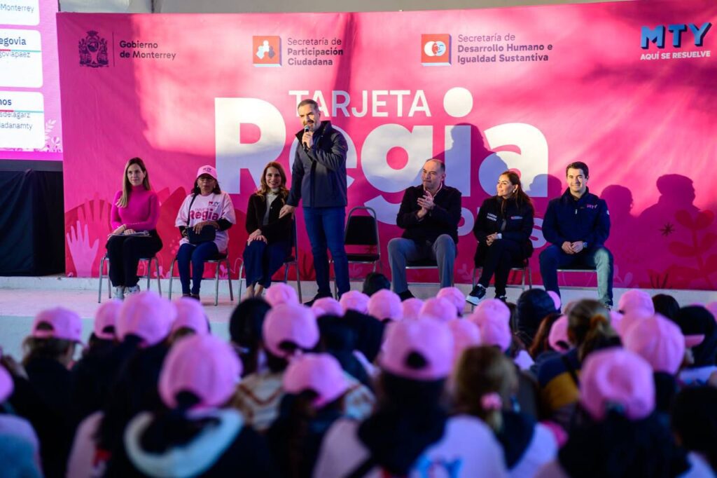 La Tarjeta Regia Plus está dirigida a mujeres de 18 a 62 años que radican en Monterrey y se encuentran en situación de vulnerabilidad social. El programa contempla un apoyo de 2 mil pesos bimestrales, así como acceso a talleres de autoempleo, microcréditos, becas y atención psicológica y legal.