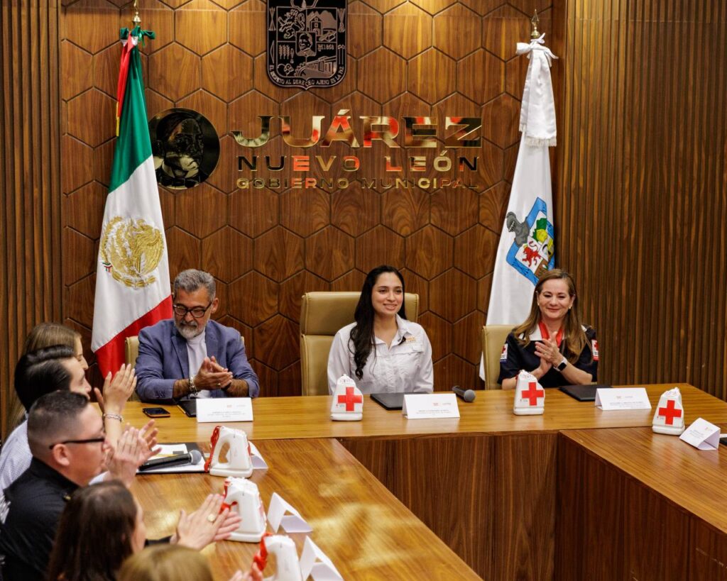 Al evento asistieron el secretario del Ayuntamiento, Américo Garza Salinas, la directora general del Sistema DIF Juárez, Victoria María García Cavazos; en representación de la Cruz Roja Mexicana, Mónica Martínez, miembro del Consejo de la Delegación Monterrey; así como la presidenta del Comité de Damas Voluntarias, Alejandra Carranza de Flores, además de funcionarios municipales, quienes coincidieron en la importancia de consolidar esta alianza para fortalecer la atención de emergencias y avanzar en el regreso de la Cruz Roja en Juárez.