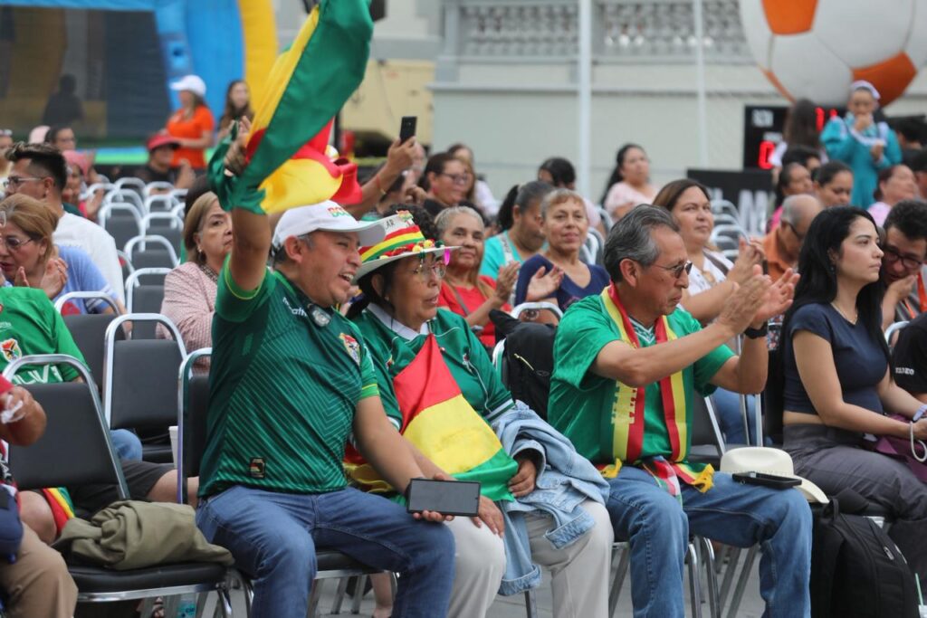 Cientos de personas disfrutaron de la previa del partido entre Bolivia e Irak, en la Plaza Principal de Guadalupe.