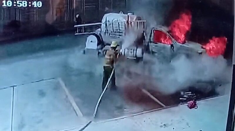 Arriesga brigadista de PC de Escobedo su vida y sofoca incendio en pipa de gas